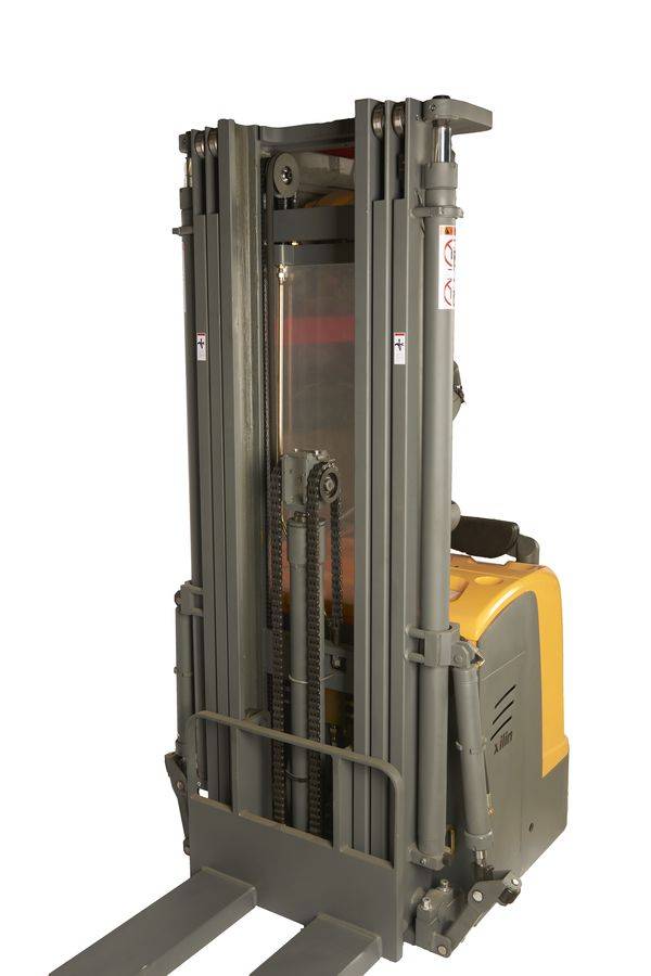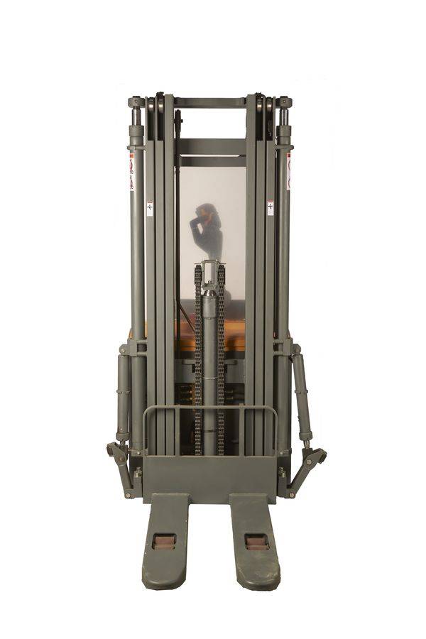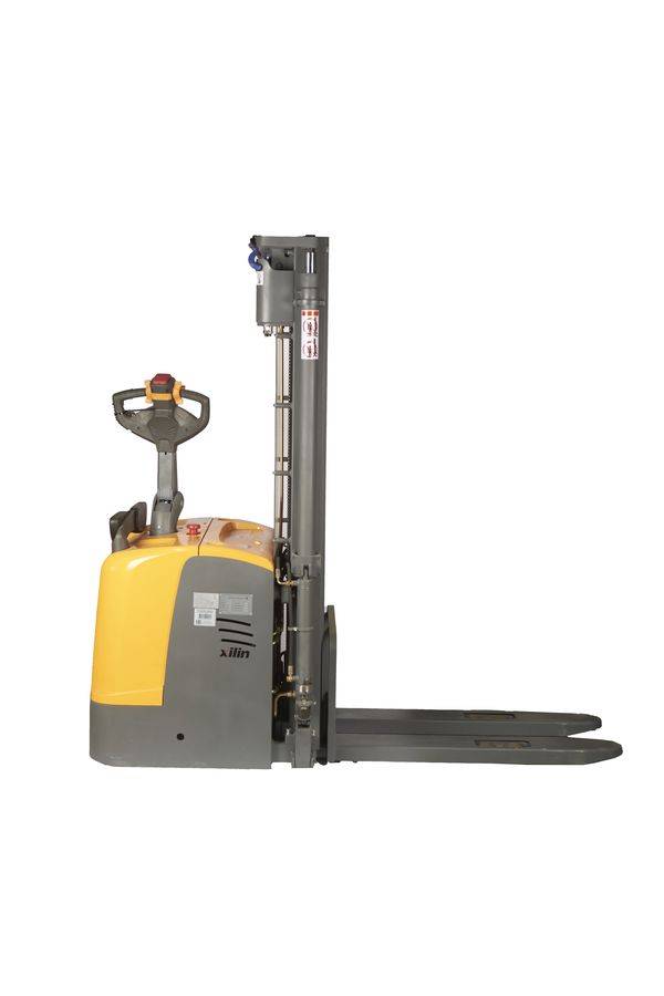 Данный штабелёр работает от электричества не только на подъём, но и на передвижение в горизонтальной плоскости. Обладает лёгким и удобным управлением, высокой манёвренностью. Оснащён электромагнитным тормозом. Для обеспечения устойчивости штабелера при подъеме груза на большую высоту данная модель оснащена специальными дополнительными выдвижными упорами, которые могут быть убраны при транспортировке груза в нижнем положении вил.