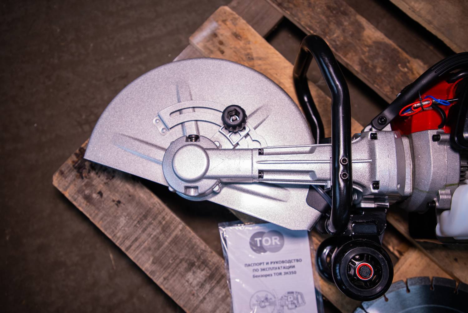 Бензорез TOR JH350 используется для распила кирпича, дерева и металла. Техника с бензиновым приводом может использоваться автономно на площадках не оснащенных электросетями.